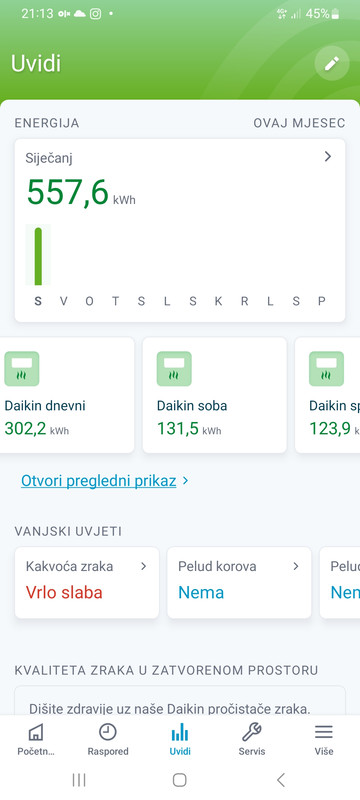 Ono sto sam upratio je da u modulaciji na 23-24 stepena ova u dnevnom vuce oko 500 w, a kad je podeseno na 21 (kad nisam tu samo nju ostavim) i vuce oko 400 w.